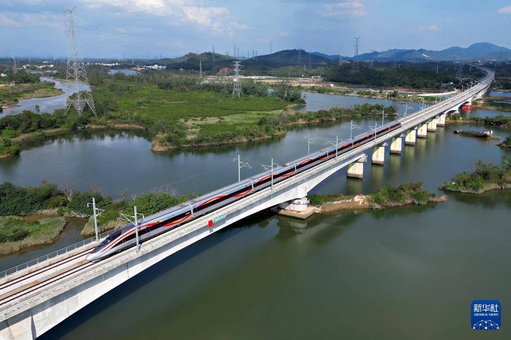 12月22日广盛网广盛网,从湛江北站开往广州白云站的列车驶过丰头河特大桥。