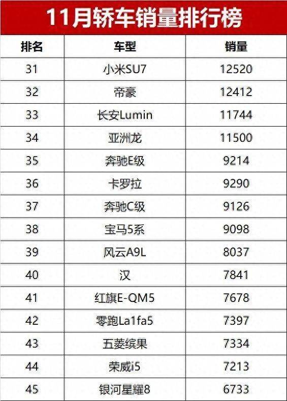 新能源车企11月销量榜单刚一出炉天宇配资,小米汽车就交出了“喜忧参半”的成绩单。一方面,前11个月累计批发销量突破36万辆,同比暴涨218.1%,提前撞线全年35万辆的交付目标;另一方面,主力车型SU7在纯电轿车市场首次跌出前十,而新晋爆款YU7虽创销量新高,却在SUV赛道被特斯拉Model Y反超。