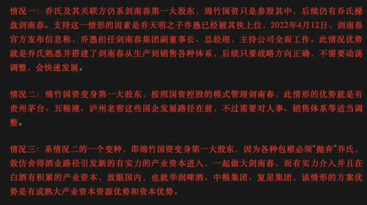 就在此时,绵竹国资宝融配资出手了!这个结果财金龙门阵早在2023年3月29日就曾发文分析过(《乔天明判了 剑南春控制权的三种可能》如下截图)而今应验了财金龙门阵两年前的文章中的推演。